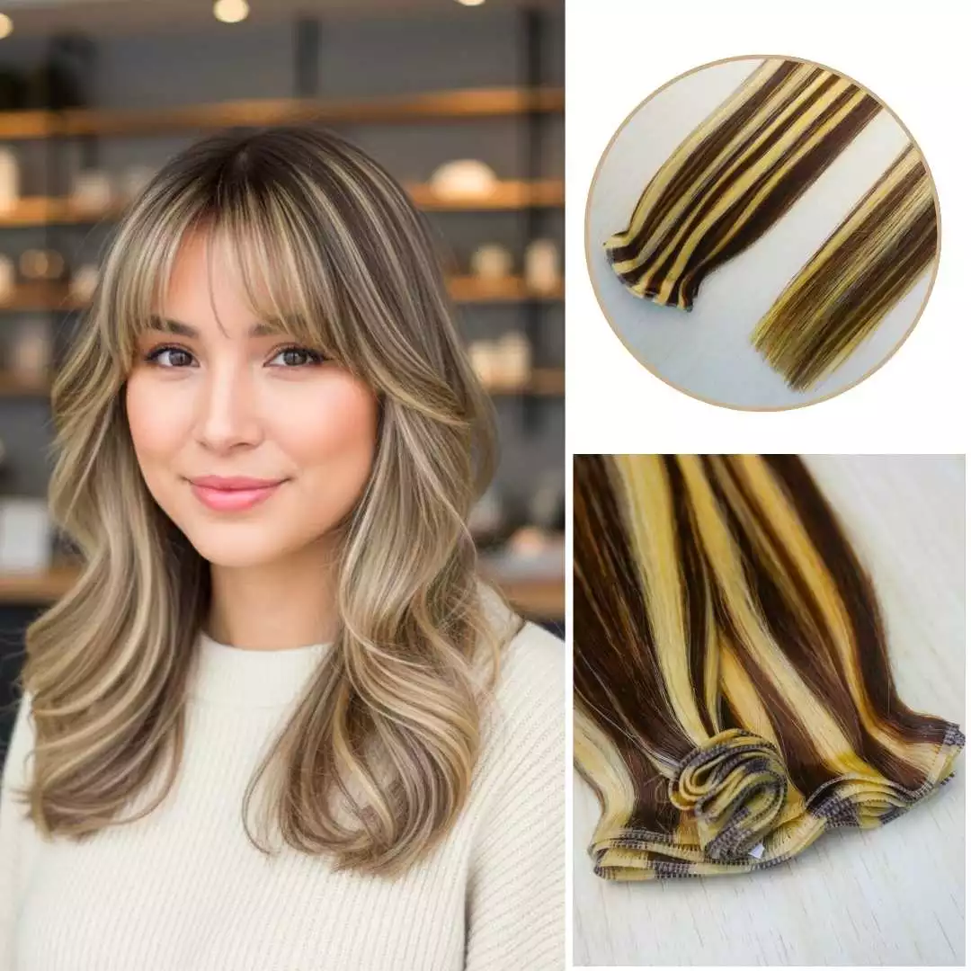 Buyers often want highlighted hair that looks clean through the mid-lengths and still feels usable at the ends. This genius weft is a strong choice for that need because the hair is shown with a straight texture, a neat weft top, and thick ends that help the overall bundle look more balanced.
