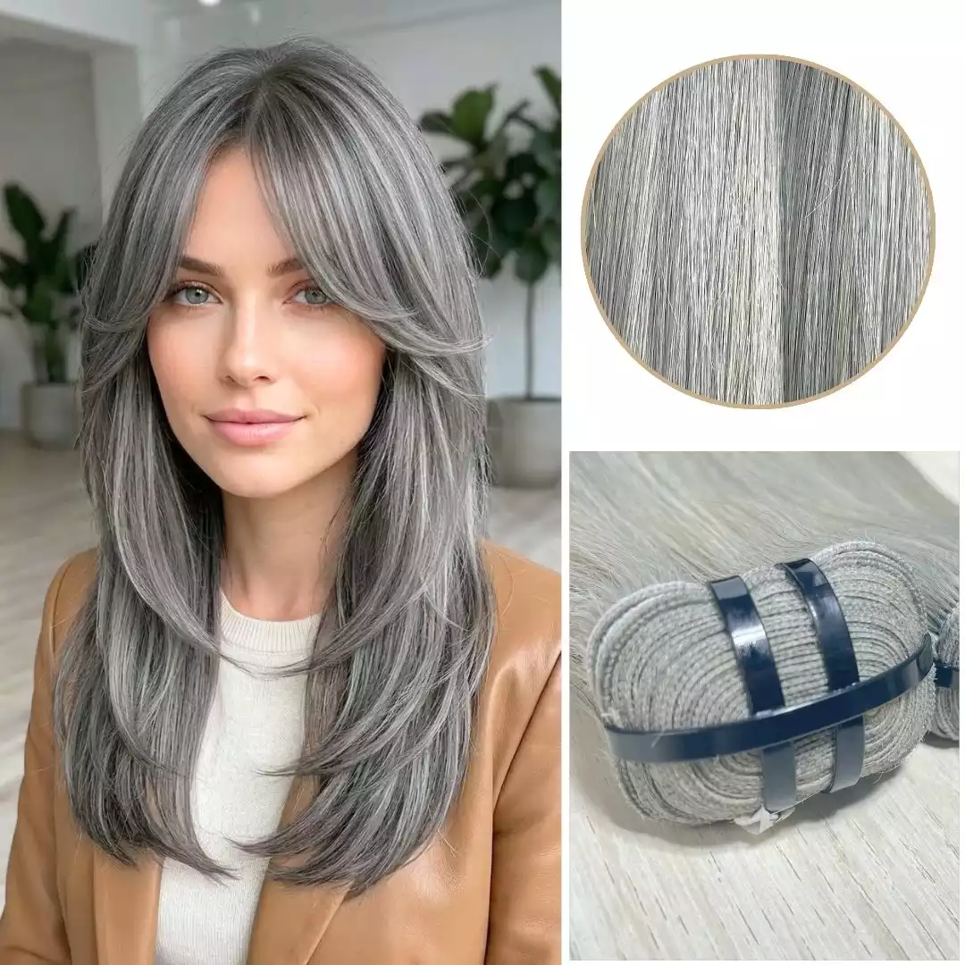 Grey hair color double weft extensions from GreatHair are a strong choice for buyers who want a smooth, full, and modern grey look using Vietnamese human hair. Contact GreatHair for product inquiries, wholesale orders, or private label hair extension needs.