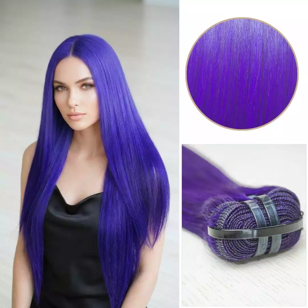 Our violet hair extensions are straight double weft extensions made from 100% Vietnamese human hair. They are a strong choice for salons, resellers, and buyers who want vivid violet hair color with a sleek look and fuller length.